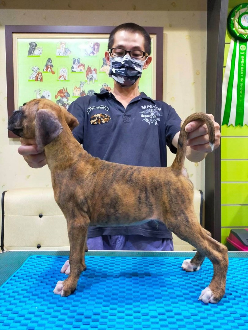 拳師犬虎斑色系公犬拳師犬BOXER有如拳擊選手出拳的模樣而得名拳師犬活潑逗趣與高度的敏銳度服從性逐漸深受家庭喜愛讓人有衝動擁抱的拳師犬外柔內剛感性拳師犬能靜能動活潑拳師犬好動黏人貼心拳師犬讓人愛不釋手拳師犬適合看家寵物拳師犬台灣明昇拳師犬專業犬舍堅持最好的犬隻品質想要擁有一隻優秀的拳師犬我們是您最佳選擇連續七年榮獲拳師犬年度最佳種公種母第一名明昇拳師犬專業犬舍0921-168-913楊老師LINE:0921168913特寵業繁字第C1070325號