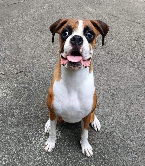 一隻充滿福氣拳師犬