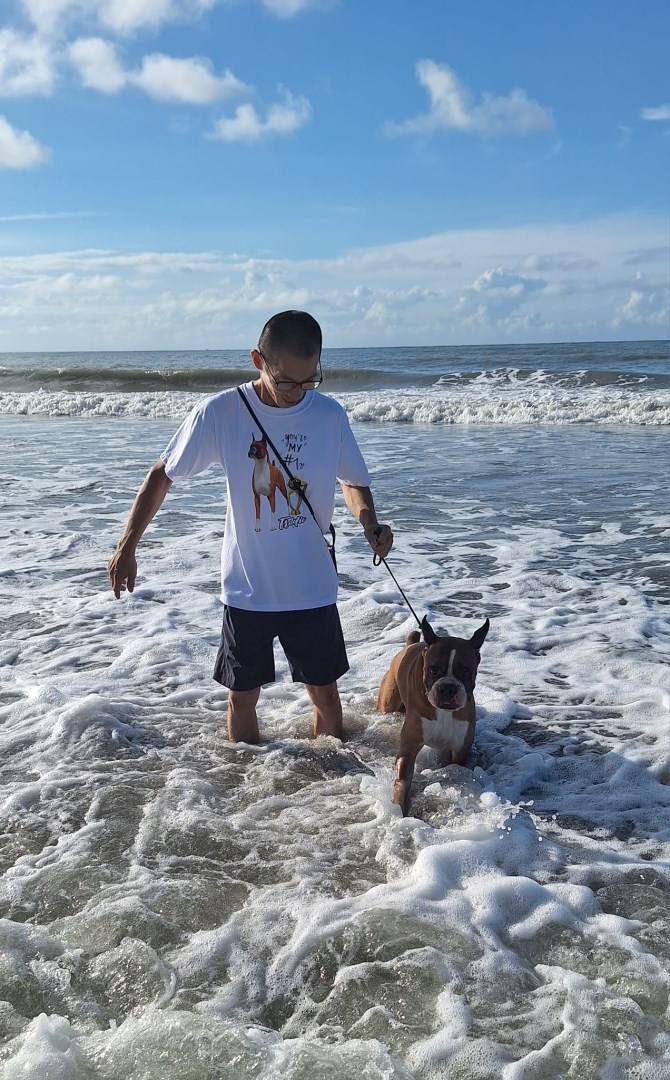 2024/09/16 晴空萬里的海邊 拳師犬〔阿鐵〕