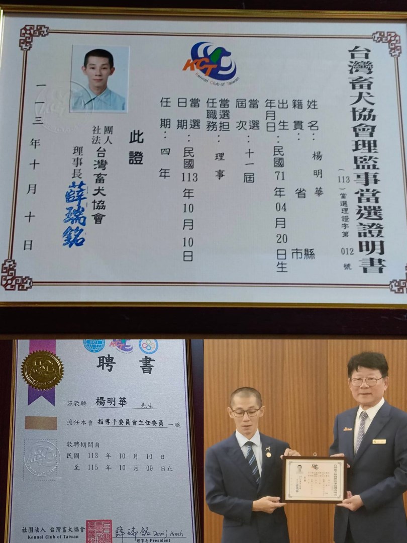 台灣畜犬協會第十一屆理事 楊明華老師