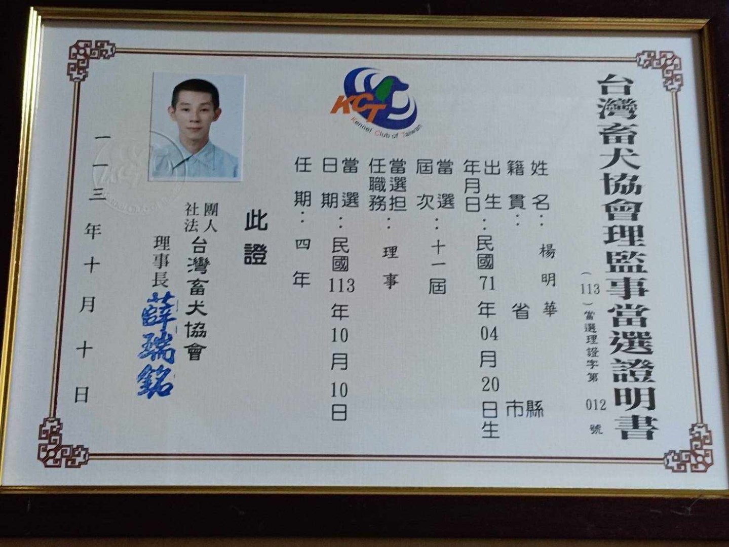 台灣畜犬協會第十一屆理事 楊明華老師