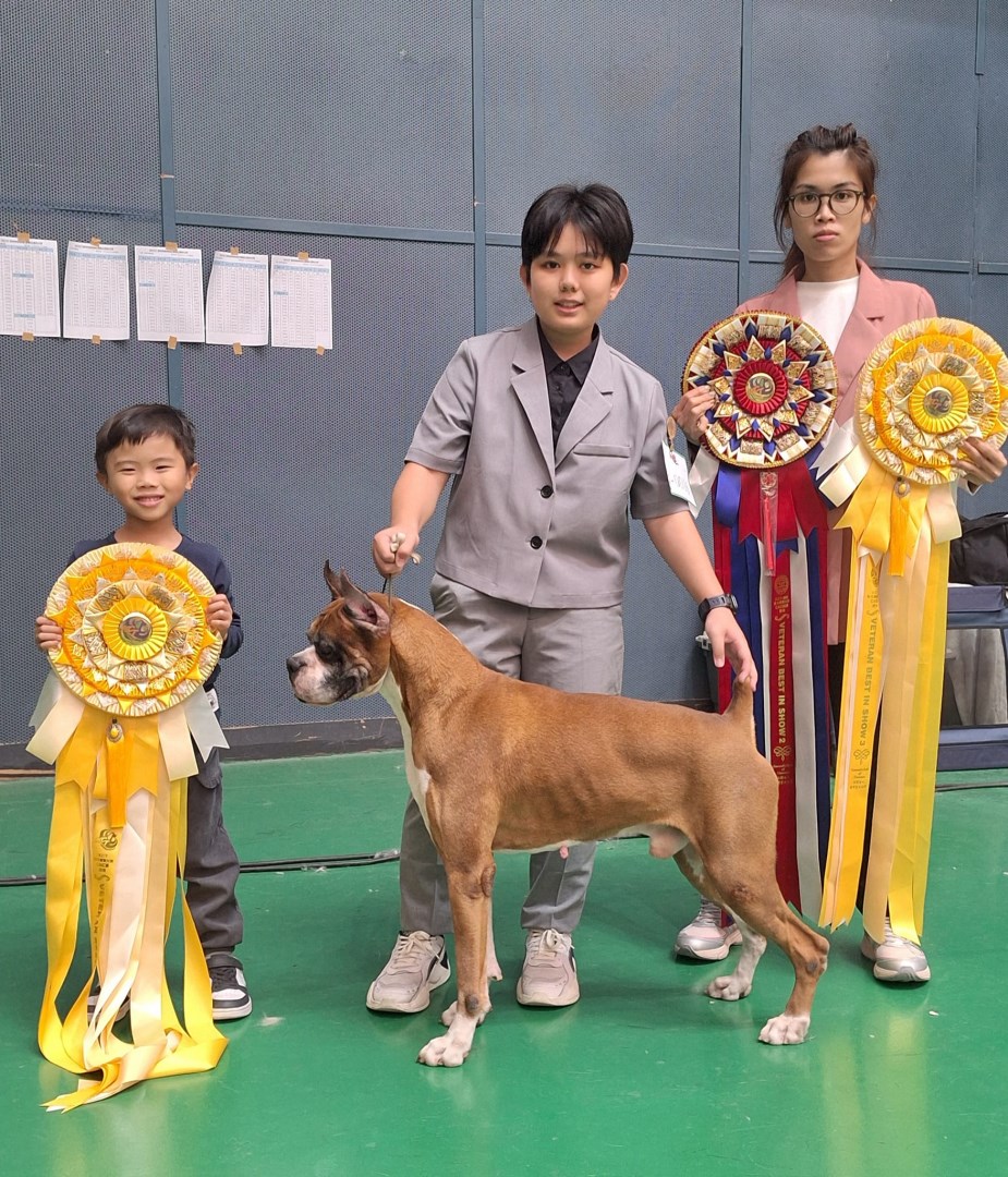 2025/03/17 KCT苗栗國際畜犬展拳師犬阿鐵榮獲長青組第二名